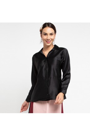 Pilar Blouse In Black, material 100% polyester. Bisa dikenakan untuk kegiatan kantor, berpergian dan acara formal.