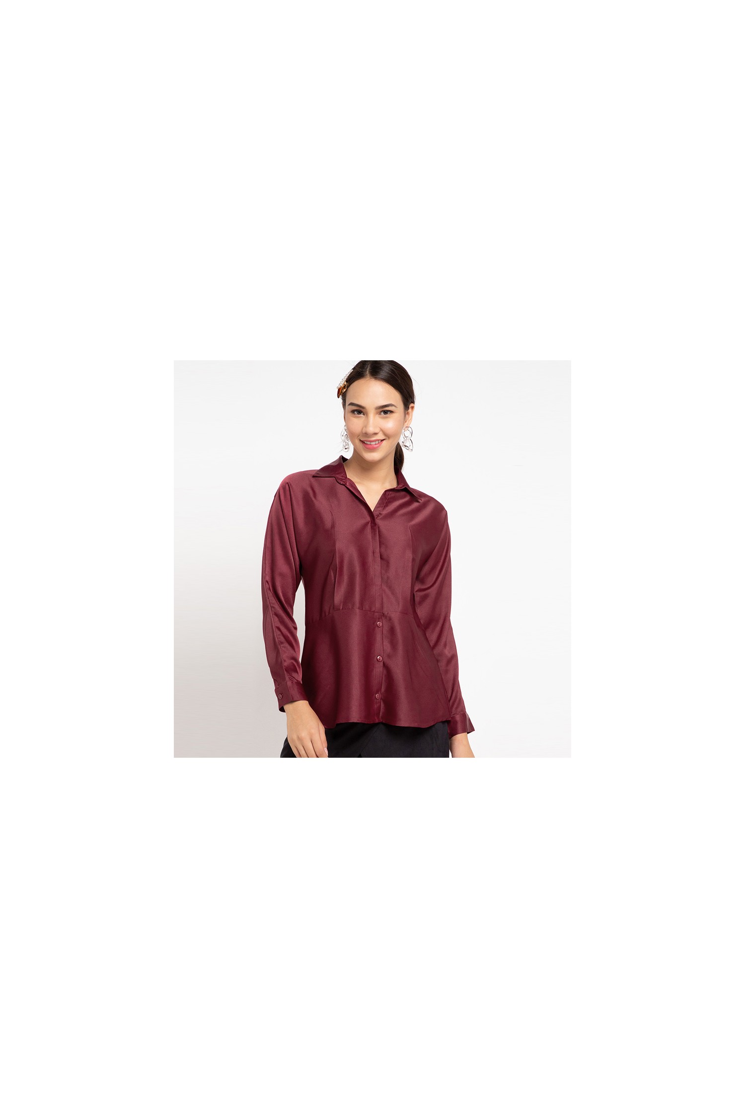 Pilar Blouse In Maroon, material 100% polyester. Bisa dikenakan untuk kegiatan kantor, berpergian dan acara formal.