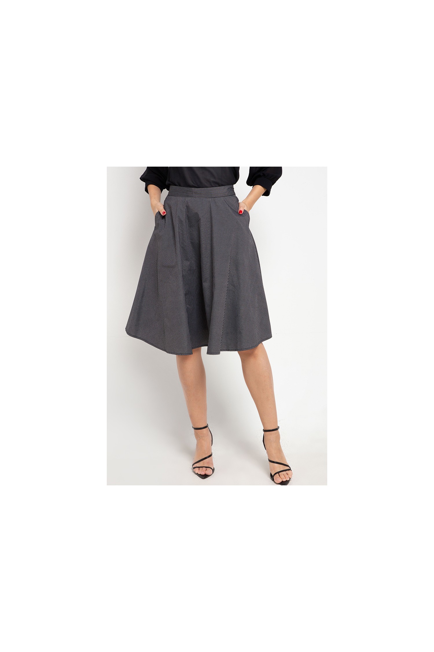 Palmer Striped Skirt, material 100% polyester. Bisa dikenakan untuk acara pesta, berpergian, dan kegiatan kantor.