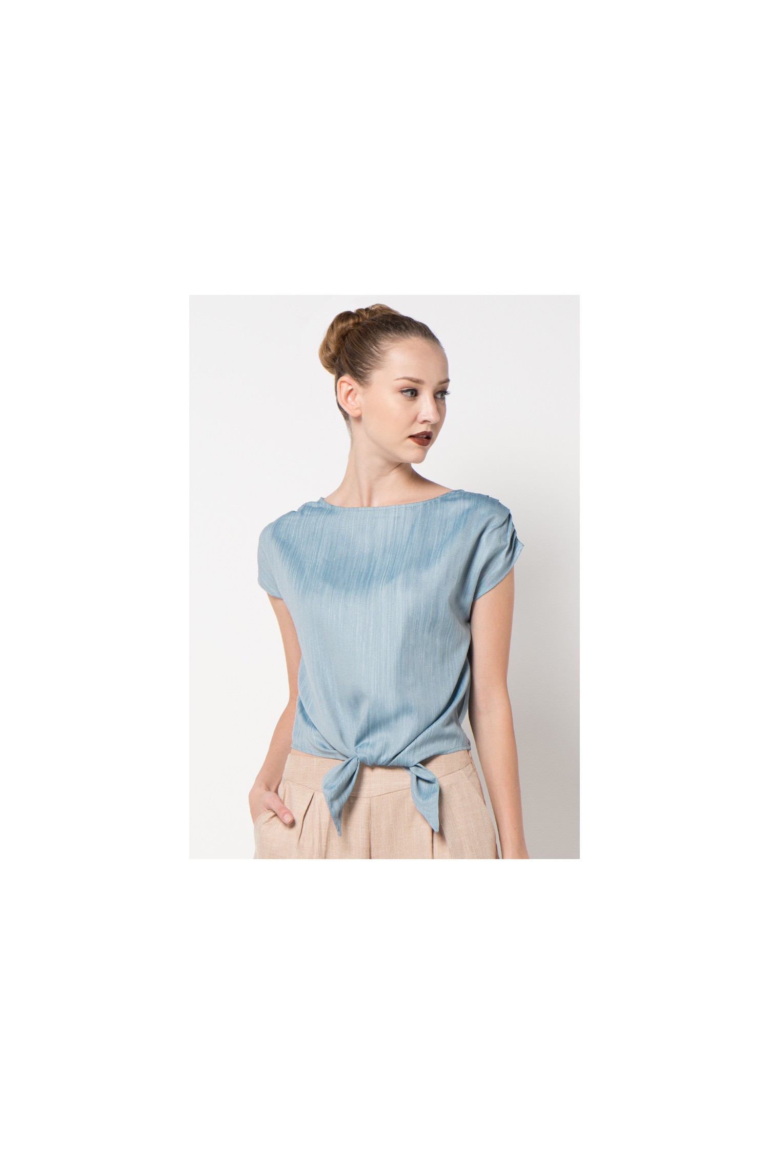 Crop Top in blue color featuring ties with cap sleeve design. This top is a great one to mix and match with all your skirts and bottoms!