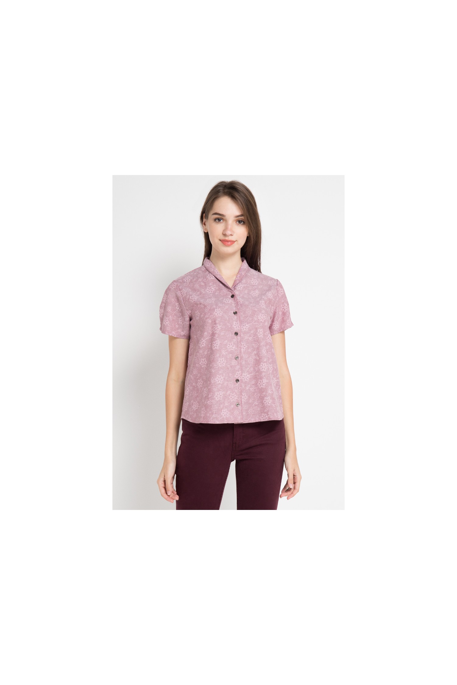 Short sleeved floral print shirt with rolled collar and buttoned front for a varied look