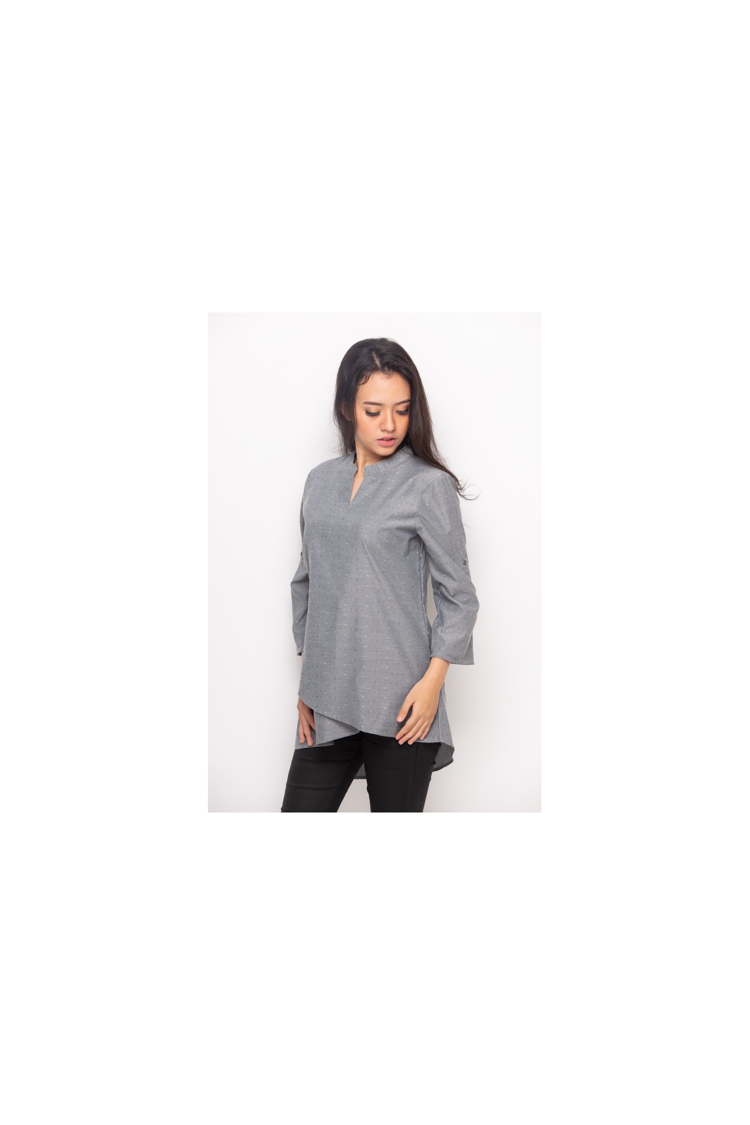Ahava Assymetrical Top Color Grey, the material used 100% Cotton is comfortable to wear and easy to absorb sweat.