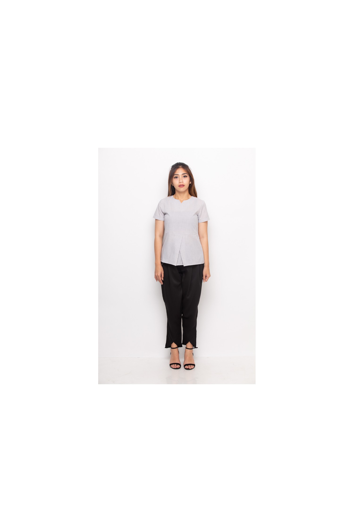 Nellie Blouse Stripes Color White - Grey, the material used by Poly Cotton Blend. Suitable for office activities, formal and non-formal events, and travel.