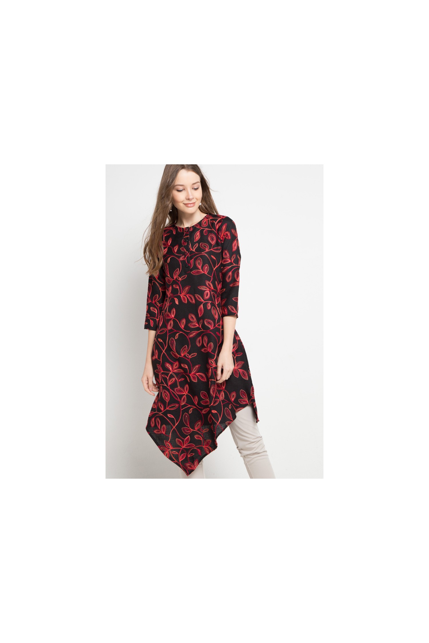 Assymetrical tunic with embroidery ,three quarter sleeves for a varied look