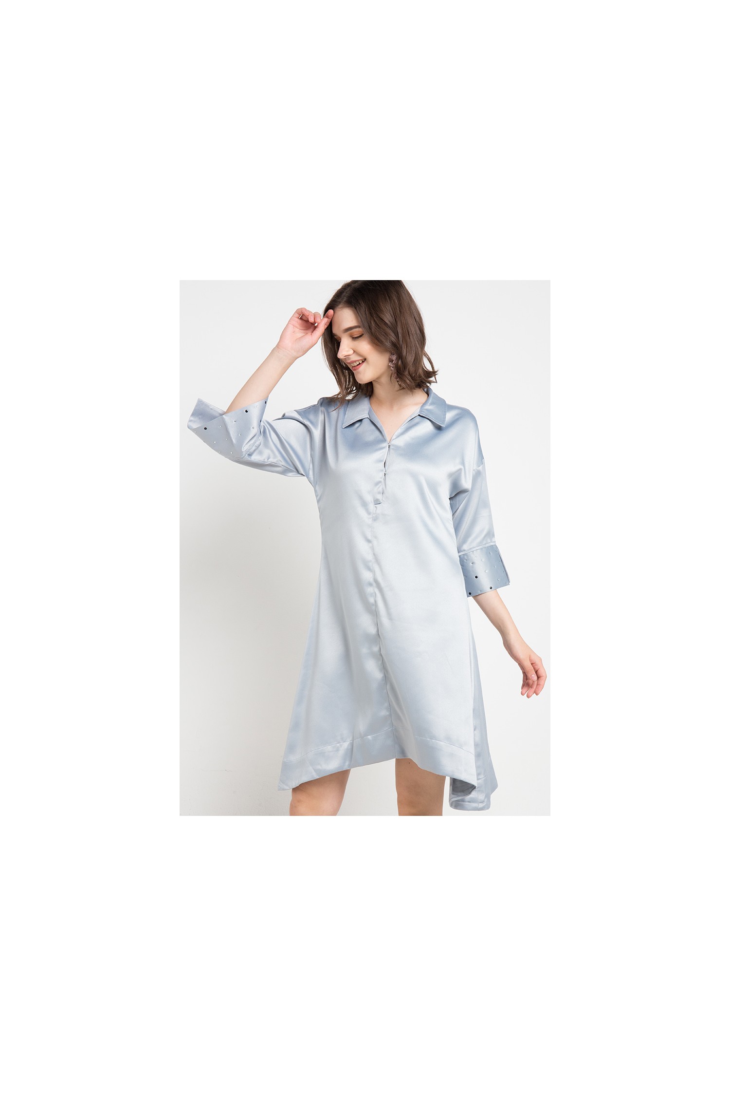 Collared tunic with three quarter sleeves, stone accents at sleeve for a varied look