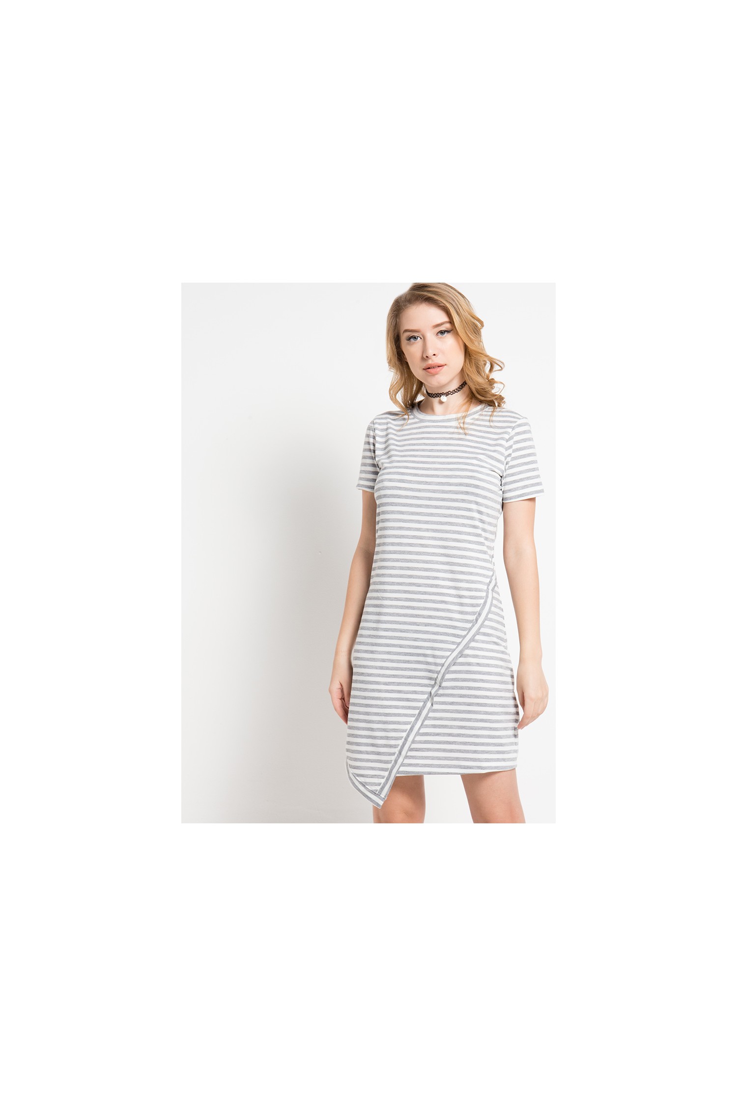 Elis Striped Knit Asymmetrical Dress in Grey-White