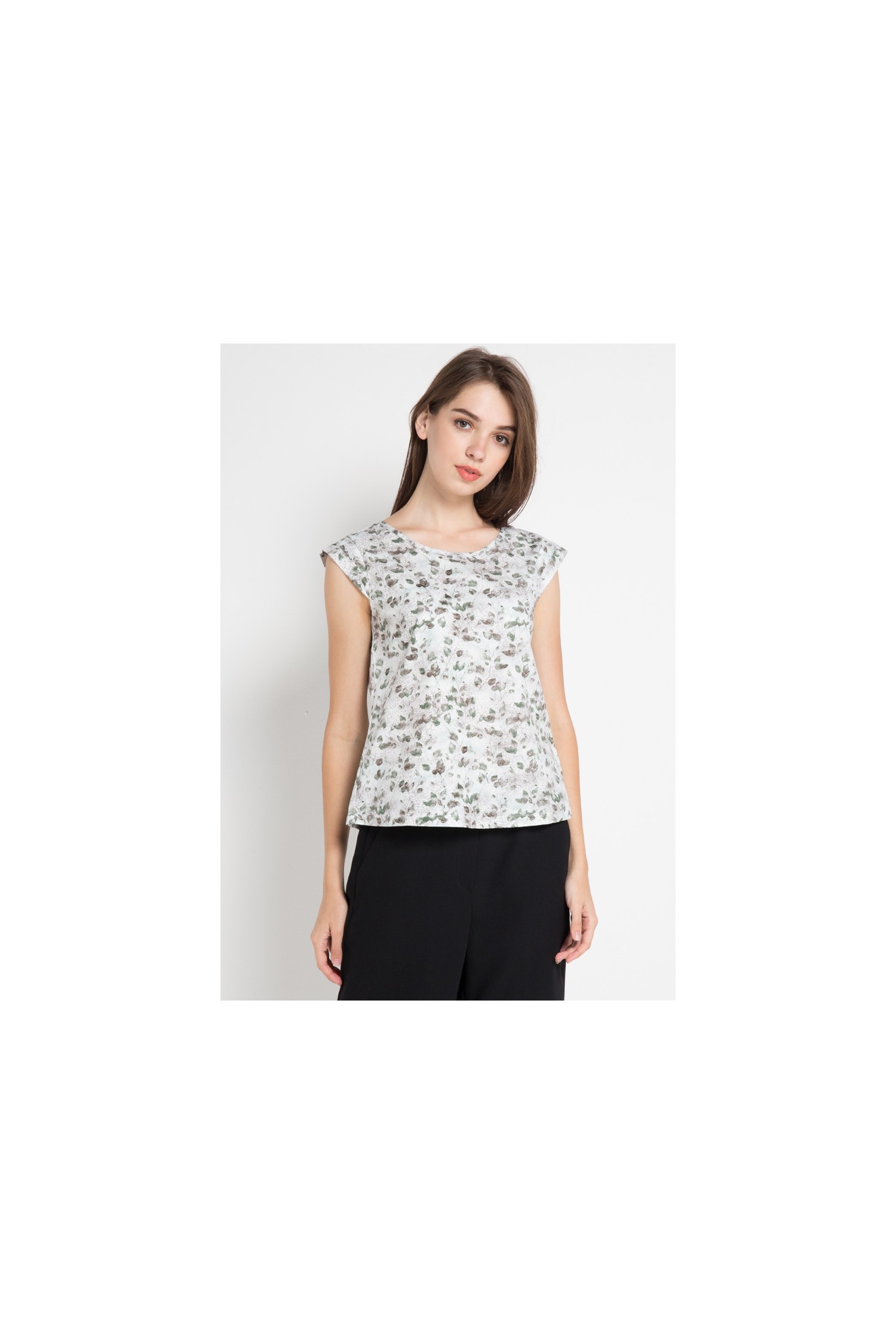 Cap printed sleeved blouse with pleat accents at sleeve for a varied look. Featuring all-over floral print.