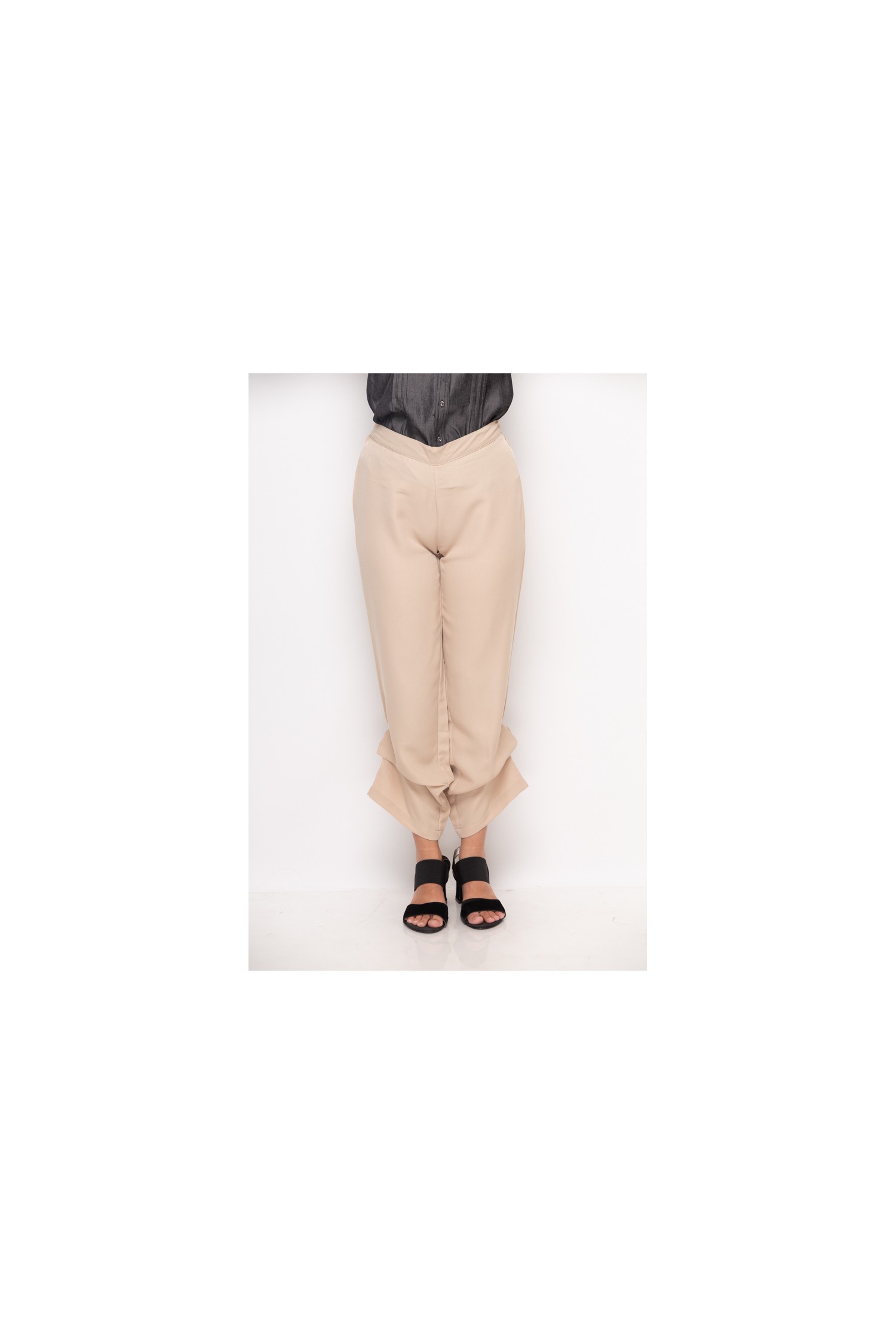 Oviya Pants Warna Beige, bahan yang digunakan 100% Polyester. Sesuai dikenakan untuk berpergian, acara non formal